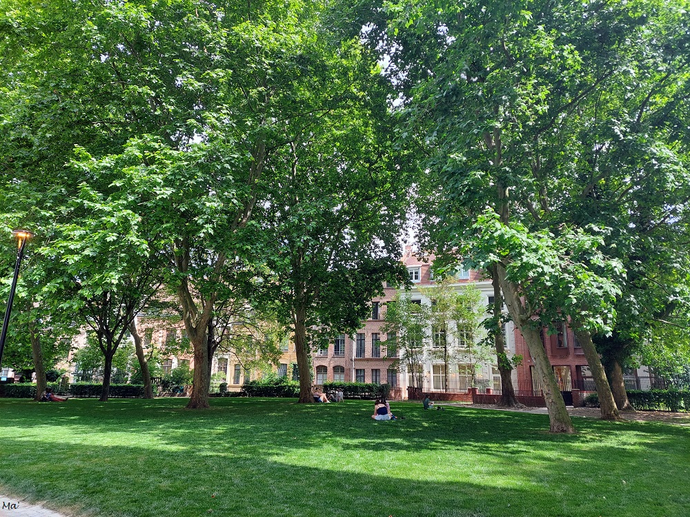 Après avoir beaucoup marché, et comme il faisait chaud, nous avons eu envie de déguster une glace. Une fois les glaces achetées, nous nous sommes installés à l’ombre sous les arbres du parc entourant la cathédrale Notre Dame de la Treille… et il semblerait que de nombreux lillois en faisaient autant !
