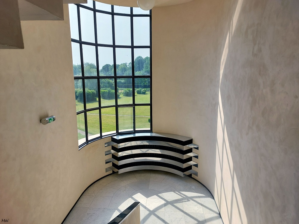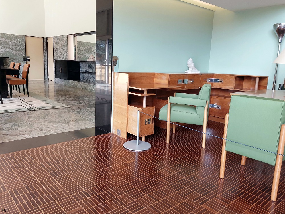 Comme nous discutions, le trajet nous a semblé très court et nous n’avons pas tardé à arriver en vue de la Villa Cavrois, dans une avenue bordée d’arbres. Dès le pavillon d’accueil, nous sommes plongées dans l’univers Art Déco des lieux.
