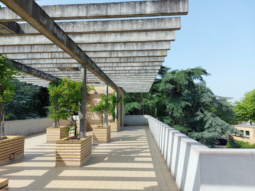 De l’autre côté du Lez, d’autres immeubles contemporains répondent au quartier Antigone, comme par exemple l’hôtel de région également conçu par Ricardo Boffil. Mais celui que je voulais voir, c’est l’Arbre Blanc. En effet, j’avais plusieurs vu passer des photos de cet immeuble sur les réseaux sociaux et il m’intriguait. Imaginé par le trio d’architectes Sou Fujimoto, Nicolas Laisné et Manal Rachdi, l’Arbre Blanc est avant tout une prouesse technologique avec des balcons en porte-à-faux pouvant atteindre plus de 7 mètres de long. Malgré tout, j’ai été un peu déçue par ses proportions hauteur/largeur qui le font plus ressembler à une pomme de pin qu’à un arbre…