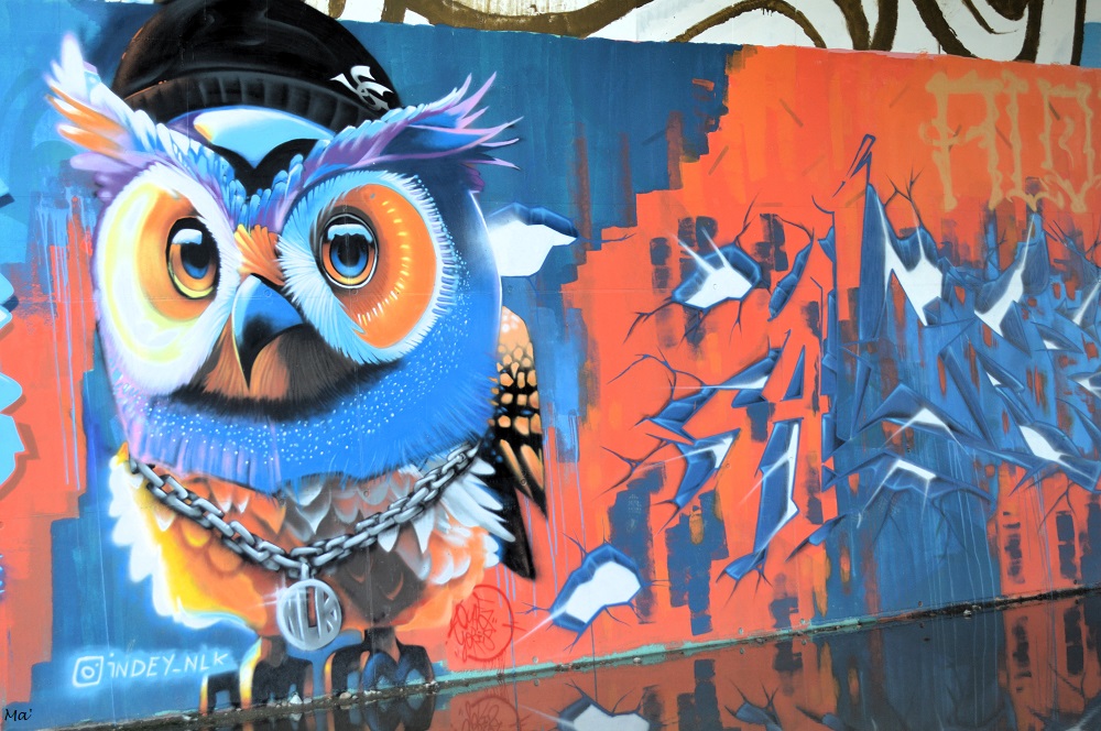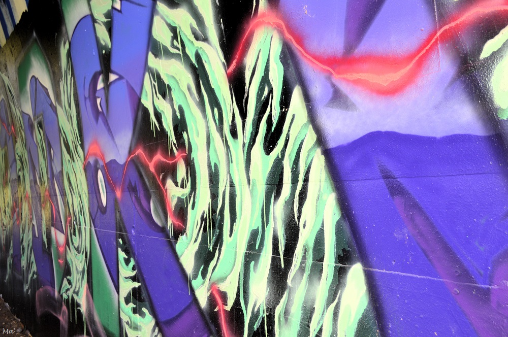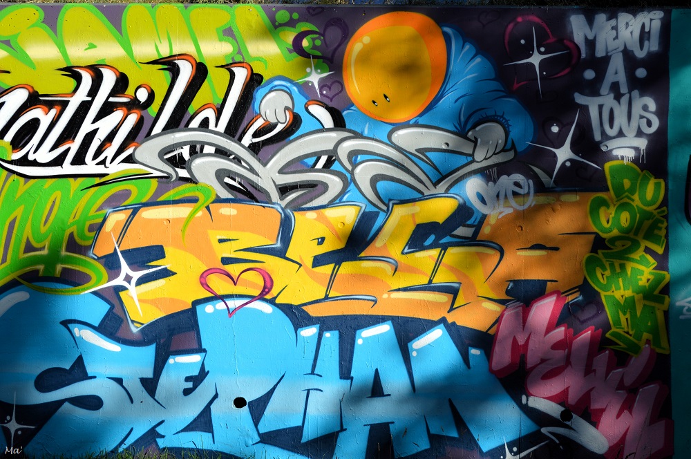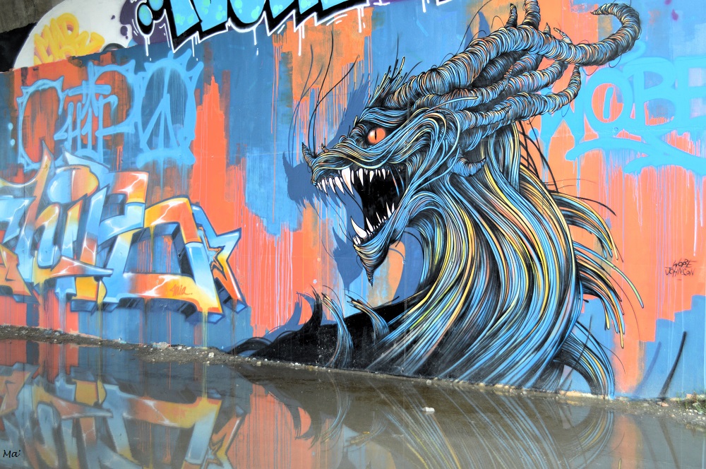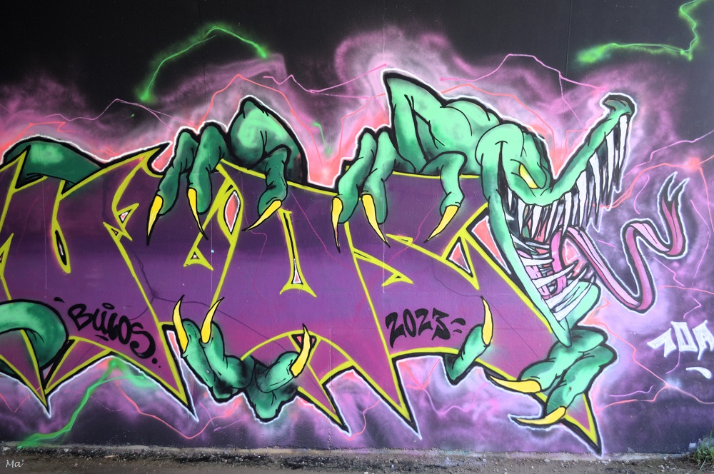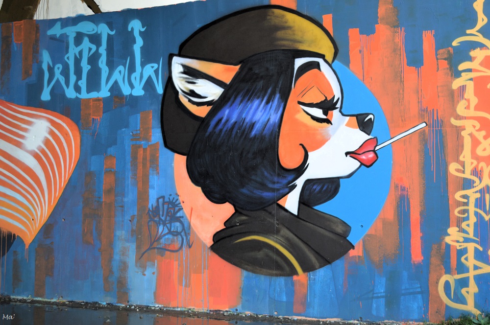 Le site du pont des Lônes se trouve en pleine nature, étrange paradoxe pour un des meilleurs spots de street-art sur la région valentinoise (l’autre étant les Locaux Rock à Valence). Ma dernière visite sous le pont des Lônes remontait à fin 2021. Les fresques avaient donc forcément évolué pendant presque ces deux années. J’ai profité d’un dimanche matin ensoleillé pour m’y rendre. Comme chaque fois, j’ai été frappée par la diversité des œuvres. J’ai aussi remarqué que le lettrage semblait être plus présent, comme si cette partie du street-art revenait à la mode après avoir fait les beaux jours des premiers graffeurs dans les années 1980.