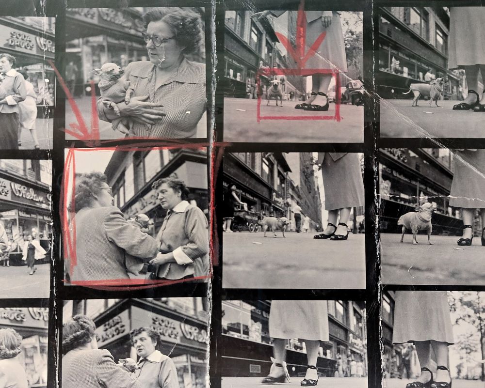 Au premier plan, sculpture d’Alfred LalibertéAngle de Peel et Sainte Catherine – Adrien Hébert – vers 1948Art contemporain canadien