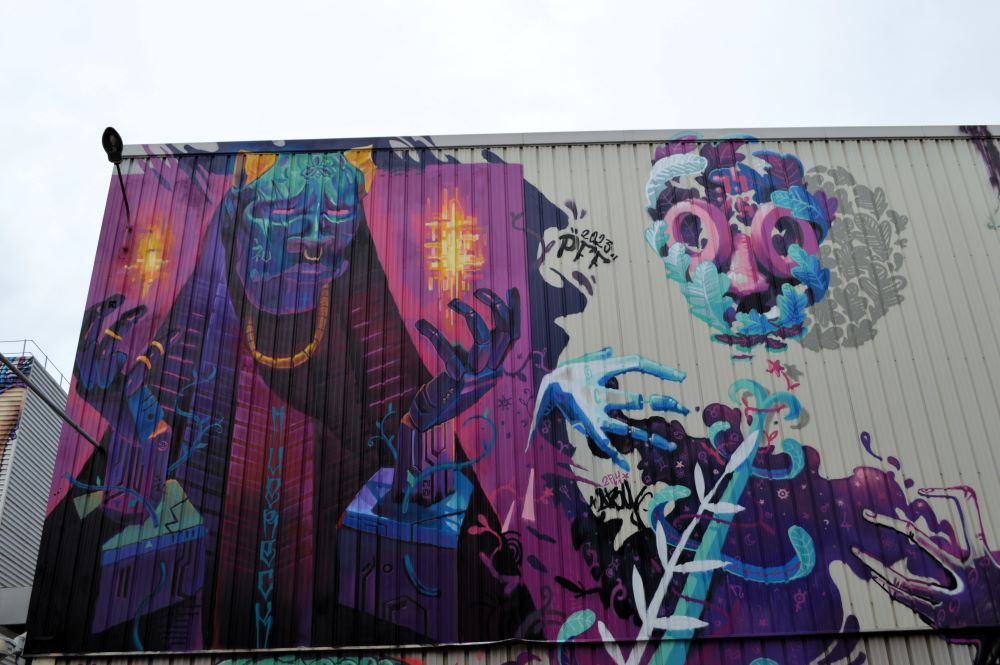 C’est en partie pour cette fresque que je suis allée faire un tour au pont des Lônes. Regardez bien à droite, vous verrez un nom familier en vert et jaune. J’avais contribué à la campagne de financement participatif du festival Wall & Love qui a permis la création de plusieurs fresques sur les murs valentinois cet été et c’était la contrepartie.
