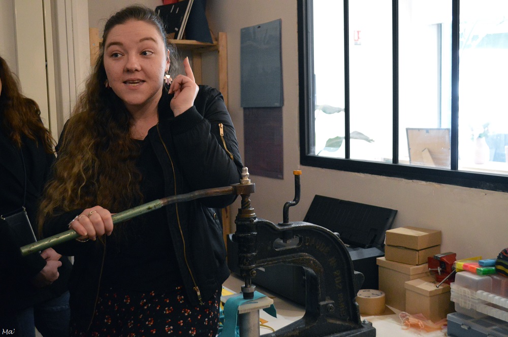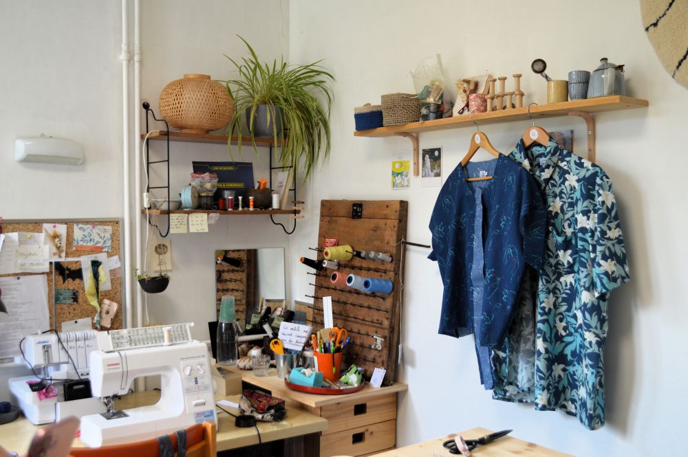 Le Chalutier est un tiers lieu, voulu comme un lieu de partage. De nombreux évènements y sont organisés : marchés d’été à l’ambiance guinguette, concerts, etc. Ce sont aussi des espaces qui sont à louer pour les artistes et artisans ou encore un studio de répétition. Les profils des occupants sont variés, et nous avons pu le constater au fil des étages. Certains avaient laissé leurs clés à Thomas pour que nous puissions jeter un œil à leurs ateliers. J’ai ainsi découvert des univers très différents, de la poterie à la couture en passant pour la marqueterie ou les arts plastiques.