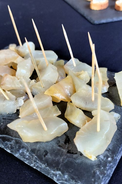 Nous avons terminé la visite par une dégustation des produits transformés directement à la ferme. En effet, en plus de vendre les filets de sandre frais et les légumes, la Ferme Intégrale a développé une petite gamme de produits directement travaillés sur place. Celui qui m’avait vraiment plu lorsque je l’avais goûté à Valence en Gastronomie, c’était le filet de sandre fumé. J’ai tout autant apprécié cette seconde dégustation. Moins gras et plus subtil que le saumon fumé, le sandre fumé peut être servi en dés dans une salade ou bien à l’apéritif. Nous avons aussi pu tester la nouveauté Sand’Rillette : une rillette de sandre et c’est un vrai coup de cœur gustatif. Enfin, nous avons pu goûter une tartinade à l’oseille. Ce n’est pas ma préférée car la préparation manque du petit goût acidulé qui fait tout le charme de l’oseille.