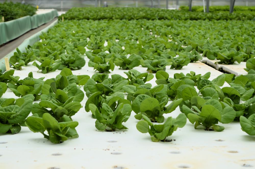 Nous partons ensuite dans la serre pour des explications détaillées sur la production des légumes. Ici, on ne cultive que des légumes feuilles car ils n’ont besoin que de nitrates pour pousser. Pour obtenir d’autres légumes, il faut d’autres nutriments dans l’eau et cela impliquerait de les ajouter (à noter toutefois qu’une toute petite production de tels légumes est faite en utilisant les boues résiduelles de l’eau issue des bassins des poissons). C’est vraiment très intéressant de voir comment tout est réalisé, depuis le moment où les graines sont semées jusqu’au légume prêt à être consommés. Le jour où nous y étions, il y avait pas mal de salades différentes, du chou kalé, des herbes aromatiques, etc. L’avantage de cette méthode de production, c’est que l’on peut avoir des légumes toute l’année et ainsi s’affranchir en partie de la saisonnalité. (Et, à mon avis, l’inconvénient outre l’aspect écologique lié au transport des alevins et de l’alimentation puis des produits, une partie étant envoyée à Rungis, c’est qu’on perd la notion de saison dans l’agriculture encore un peu plus).