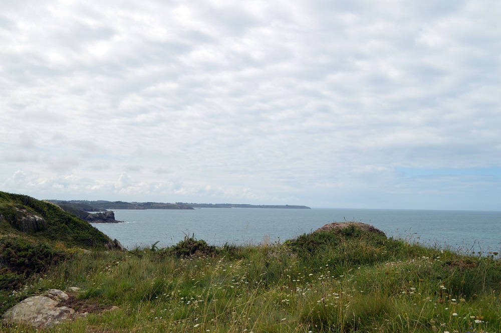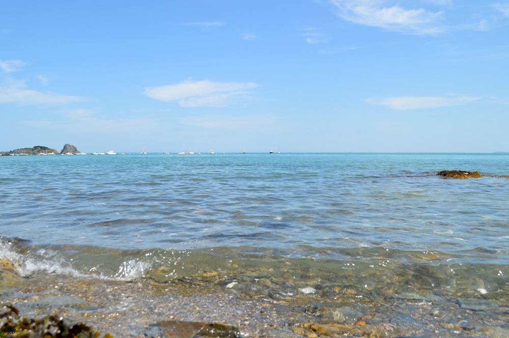Cancale, c’est LA promenade type des vacances, quelle que soit la saison, quelle que soit la météo. L’itinéraire varie essentiellement en fonction de la marée et nous fait emprunter soit le GR34 si la mer est haute, soit passer sur la plage et la grève si c’est dégagé. Cette fois, j’y suis allée avec Melle 3e et une de mes nièces. La mer était basse, et nous avons pu profiter de la plage et des rochers. Nous avons ramassé quelques coquillages, regardé les ostréiculteurs s’affairant dans les parcs à huitres, aperçu le Mont Saint Michel. Nous avions aussi quelques achats à faire sur le port (cartes postales, conserves de poisson… ). Enfin, nous avons pris un goûter à emporter (glaces pour les unes, crêpe pour l’autre) afin de le déguster face à la mer en regardant les goélands se chamailler pour de la nourriture.