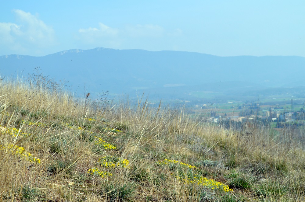 Stranger Things ?Au fond, on distingue la montagne de la RayeTapis de fleurs jaunesLa Vierge du Vœu de MontmeyranDans la végétation, apercevoir un mur arrondi….Ruine médiévaleDans les rues du village