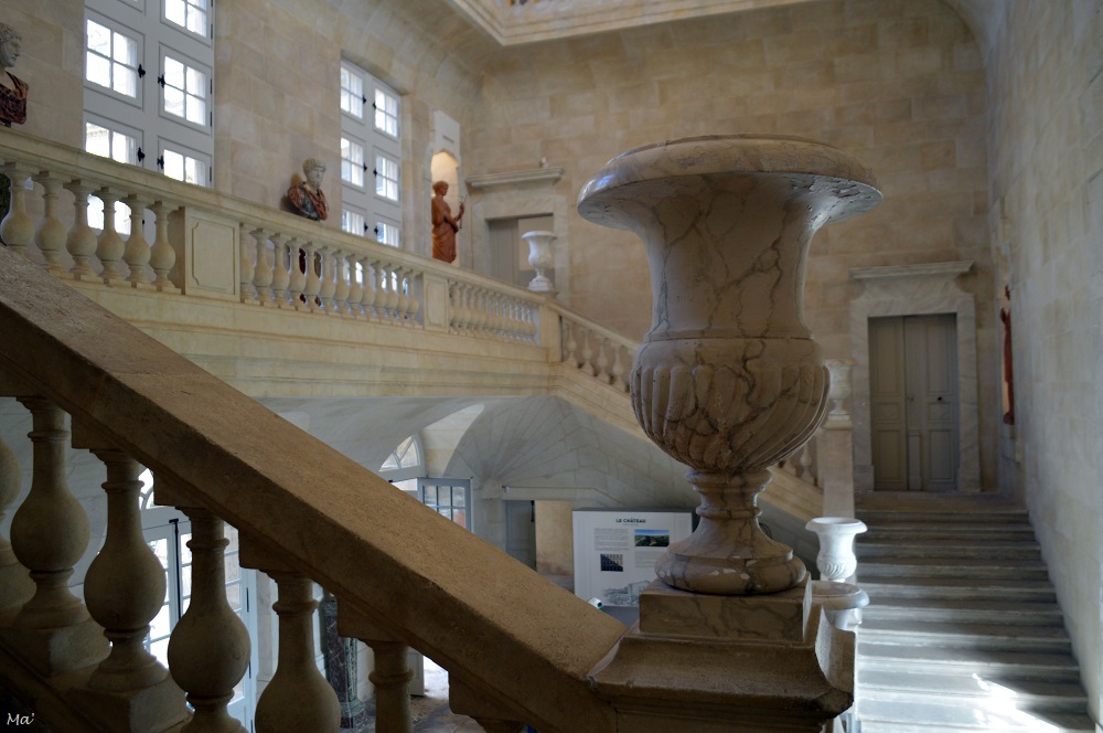 Nous avons commencé notre périple par la visite du château de Trécesson. Ce château-fort est complètement entouré d’un lac dans lequel il vient se refléter, presque complètement. La visite permet d’entrer dans le colombier avec ses 1800 boulins, démontrant la richesse du propriétaire au XVIIe siècle. Une première cour est située avant le pont enjambant la rivière qui alimente le lac. On passe ensuite le châtelet d’entrée pour pénétrer dans la cour principale où l’on visitera la jolie petite chapelle et les salles situées au dessus du portail.