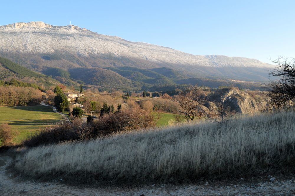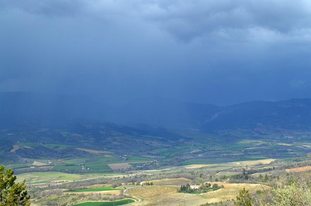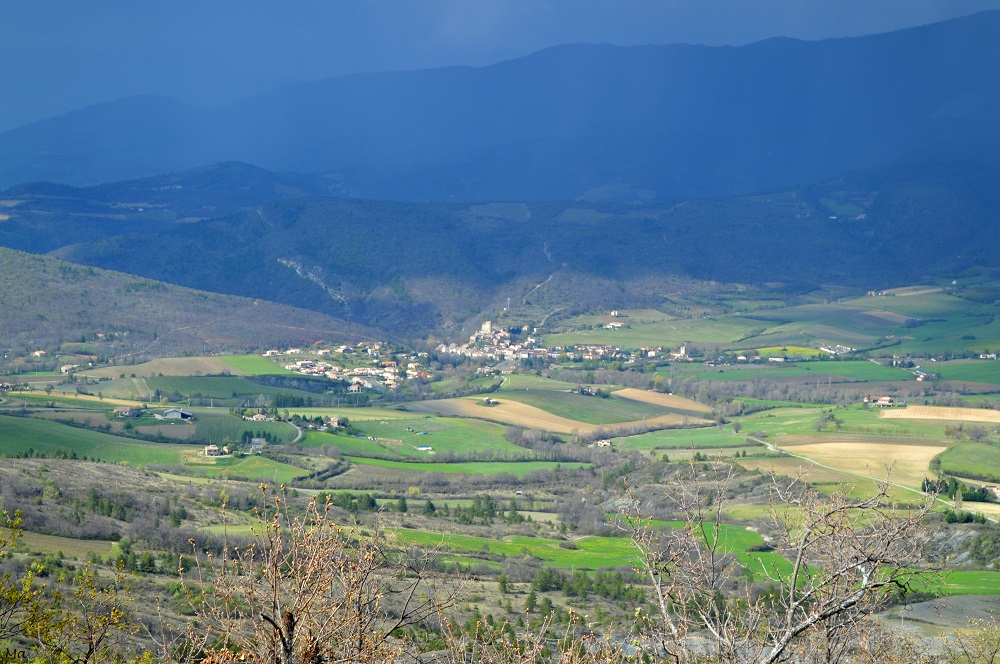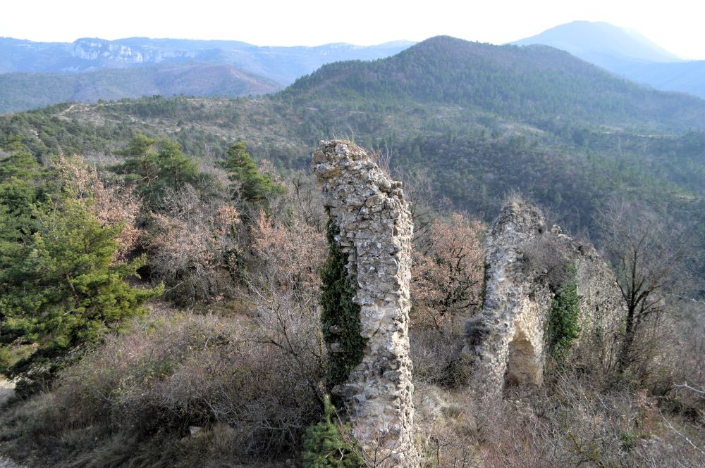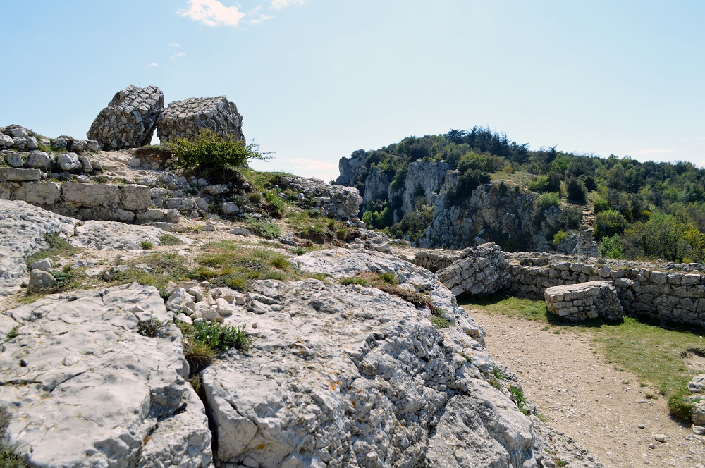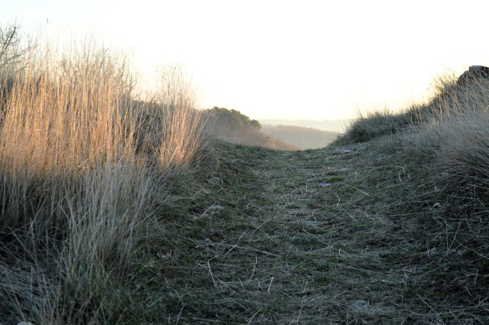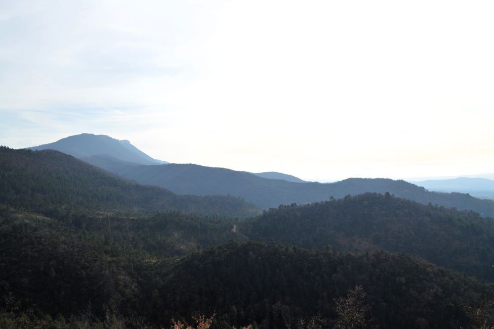A mi-parcours cependant, le chemin devient un peu moins facile. En effet, il nous conduit sur la crête dominant le vallon en montant assez droit dans les schistes rouges. Nous comprenons alors mieux pourquoi il y avait un avertissement sur le plan de la forêt comme quoi le chemin était escarpé à cet endroit. Mais la grimpette, même en plein soleil, en vaut la peine. Les points de vue sur le vallon et ses environs sont superbes. Nous poursuivons sur un sentier bien aménagé et se faufilant entre les bruyères. Puis, le chemin bifurque entre les champs et nous ramène vers le village de Tréhorenteuc.