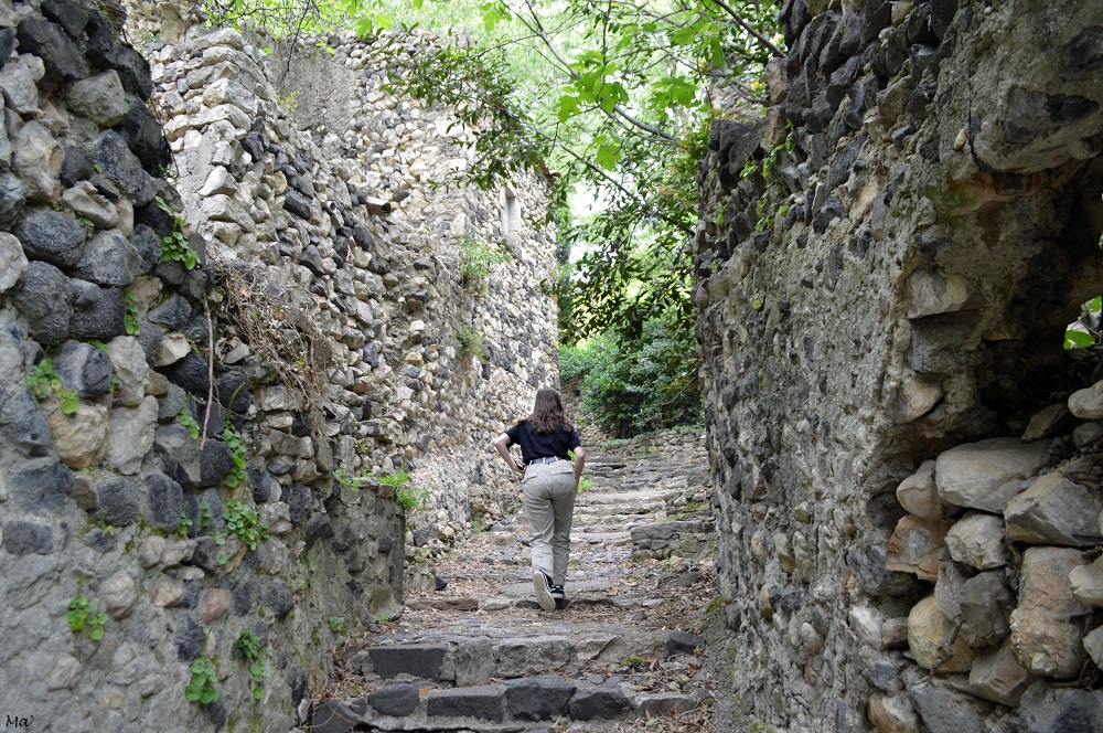 Mais il serait dommage quand on vient au Val sans Retour de s’arrêter là et de ne pas prolonger la balade en faisant le tour du vallon. Nous avons choisi de faire la petite boucle de randonnée de 4 kilomètres qui nous avait été conseillée à l’office du tourisme de Paimpont. Ce n’est pas la peine d’être équipé d’une carte car la boucle est très bien balisée depuis le centre du village de Tréhorenteuc où nous avions trouvé un stationnement (et le charmant Brocéliande Café pour déjeuner au jardin). Cela commence doucement, plutôt à plat en longeant l’étang du Miroir aux Fées puis le petit ruisseau qui l’alimente. Cette partie est en sous-bois et extrêmement agréable en plein été quand il fait chaud (car oui, il peut faire chaud en Bretagne ! On n’oublie donc pas d’emporter de l’eau avec soi quand on va randonner).