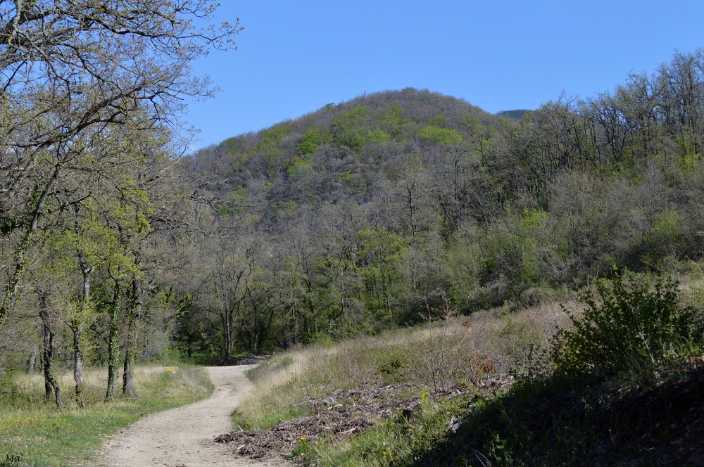 Il était temps de redescendre. Je ne voulais pas trop tarder car j’avais aussi envie de faire un arrêt à Beaufort sur Gervanne en redescendant (et d’y être avant la fermeture de la boulangerie pour m’assurer d’avoir du pain pour mon pique-nique !). J’ai jeté un dernier coup d’œil à la croix, puis je suis retournée retrouver les tintements des cloches des vaches, un peu plus bas…