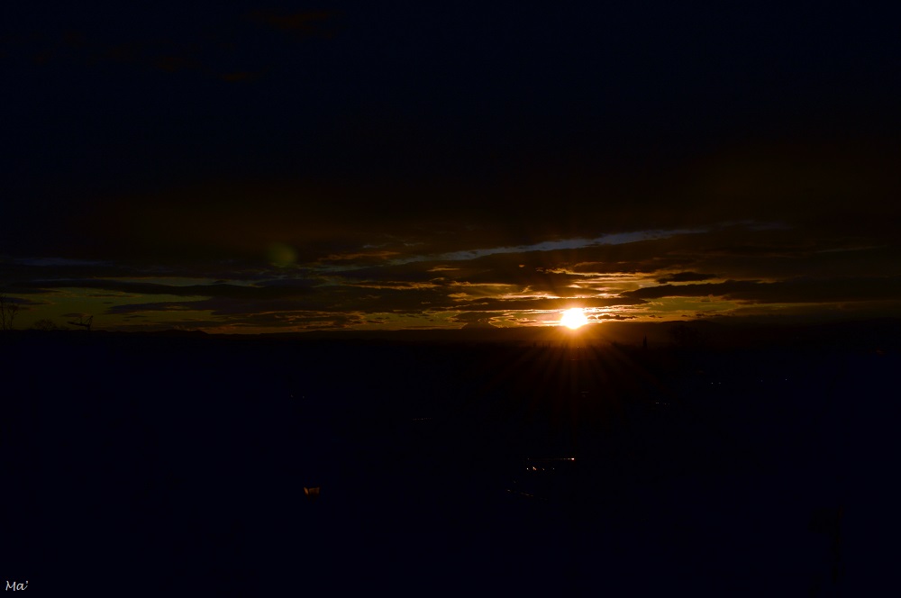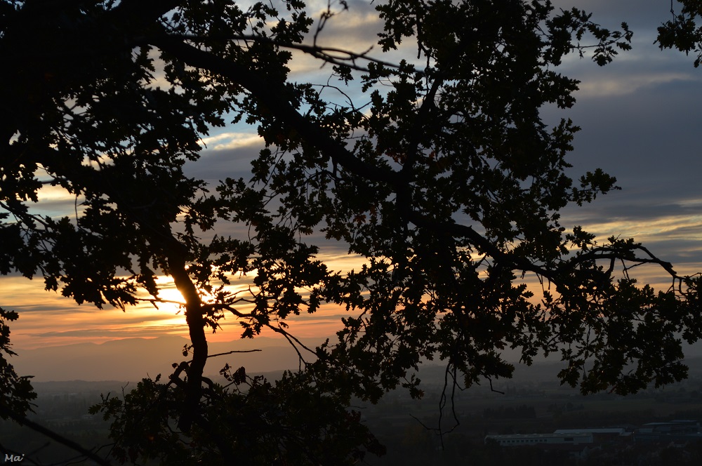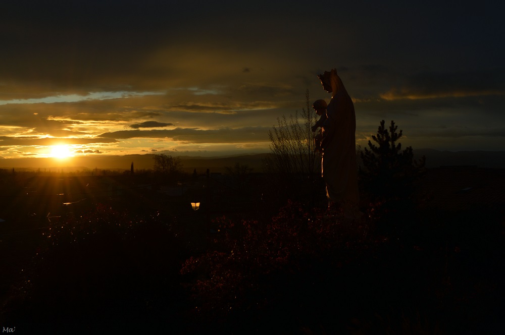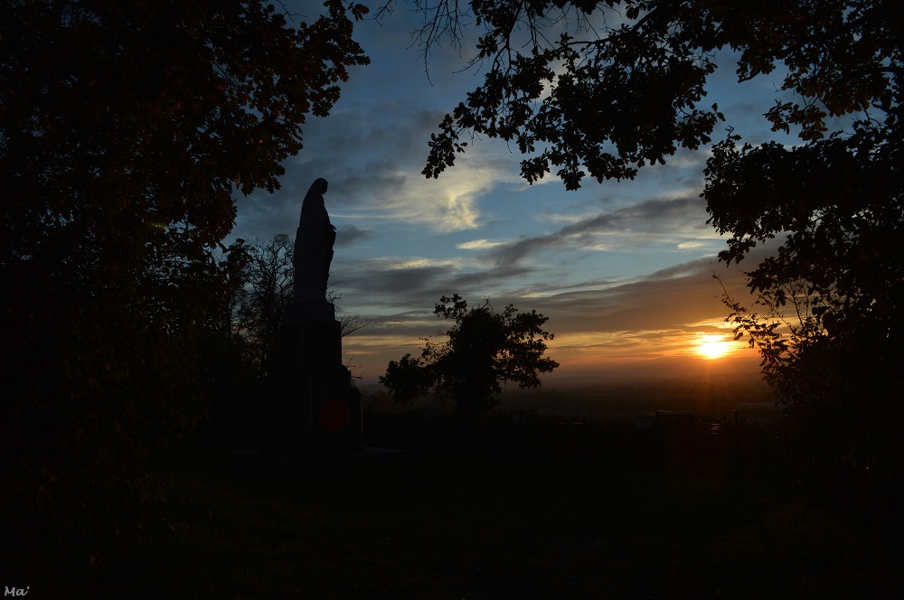 Dans le bois de la GontardePar dessus les toits du village…Doucement, le soleil se couche…Coucher de soleil au pied de la Vierge du Voeu