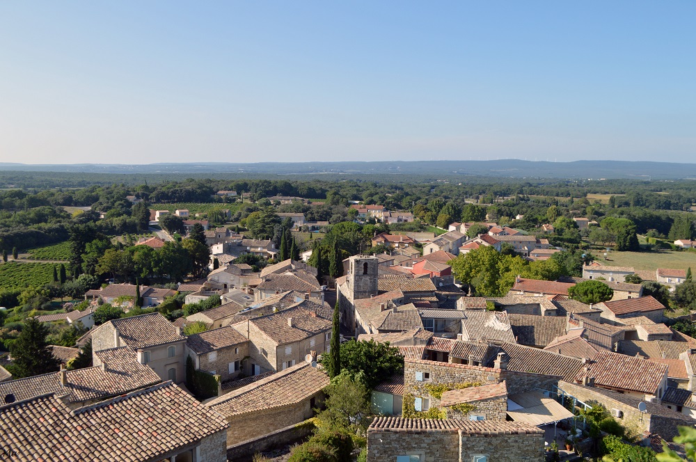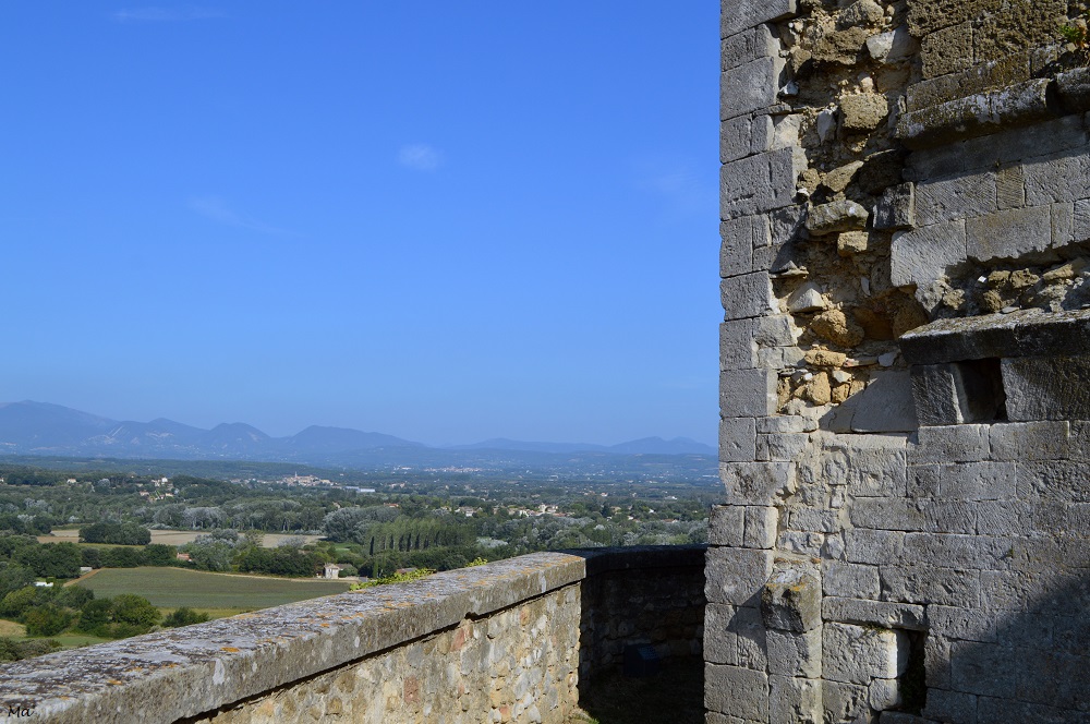 Le village est blotti au pied de sa tour en un dédale de calades médiévales, et se poursuit autour de la butte avec les constructions du XIXe siècle, dont un charmant lavoir communal. Le jour où nous y étions, le mistral soufflait très fort et s’engouffrait dans les ouvertures des ruines de l’ancien château. De l’esplanade au pied de la tour de Chamaret, la vue sur les alentours est grandiose. Nous repérons assez facilement Grignan d’un coté et le Mont Ventoux de l’autre. Avec le vent, nous n’avons toutefois pas très envie de nous attarder sur place, aussi, nous repartons en direction de Grignan.