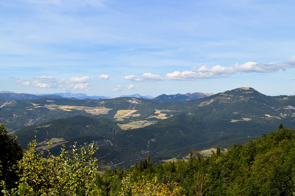 En redescendant de La Bâtie des Fonds, nous avons fait un crochet par la station de Valdrôme. A la fin des années 1980, une station de ski avait en effet été implantée sur la montagne de l’Aup. Quelques téléskis ont fonctionné jusqu’au début des années 2010 mais le manque d’enneigement cumulé avec un fort éloignement de tout ont eu raison de l’activité de ski alpin. Propriété du département, la station a été reconvertie dans les activités estivales : tir à l’arc, deval-kart, tyrolienne et mini-golf viennent compléter les propositions de VTT et de course d’orientation. Nous n’avons malheureusement pas pu en profiter : nous étions le 3 septembre et les activités avaient fermé le 31 août. Nous avons toutefois apprécié les paysages, grandioses de la station et de ses environs.