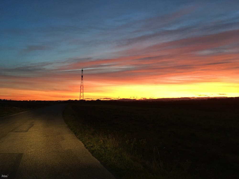 Dernier retour de Lyon avant ????Flamboyant coucher de soleil sur la plaine valentinoiseFin de journée dans la plaine de Valence