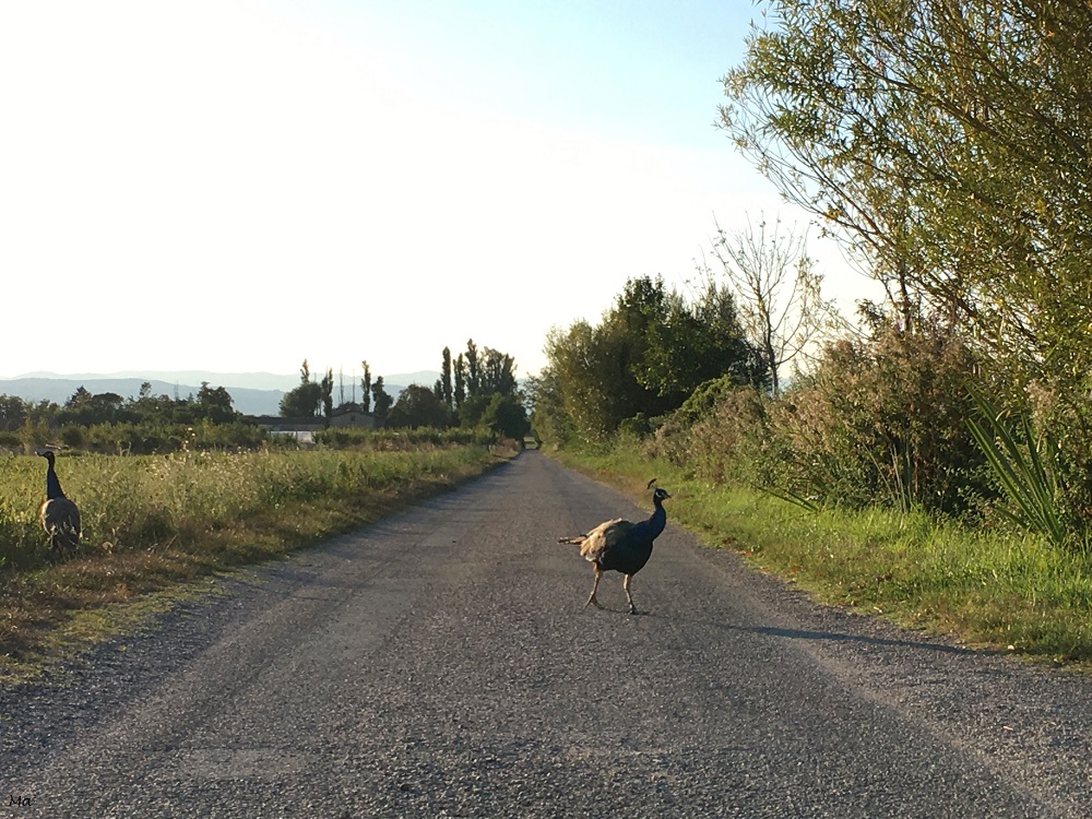 Et parfois, le destin ajoute un petit plus pour que le trajet soit encore plus exceptionnel. Cela a été le cas un soir où en rentrant, il y avait des paons qui picoraient tranquillement au bord de la route accompagnés de quelques poules.