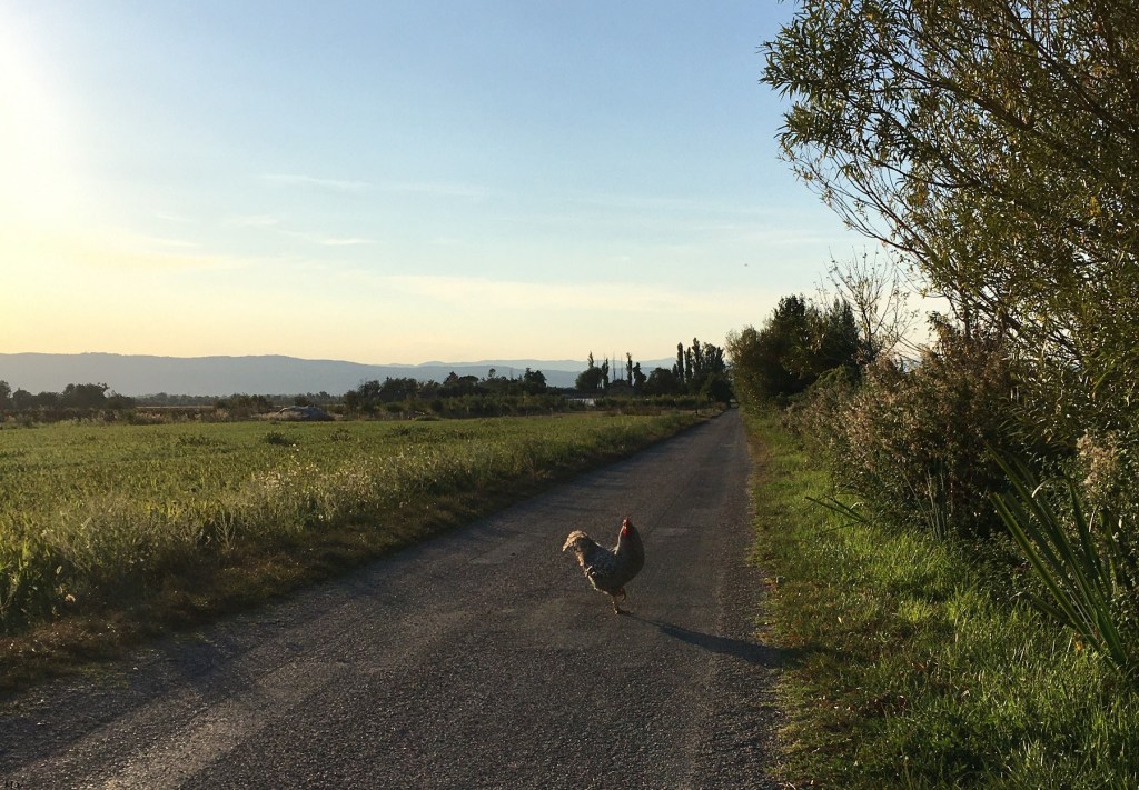 Lever de soleil au-dessus du Vercors depuis ChabeuilPetit matin à la gare de Valence TGVCroiser des paons au bord de la route dans la campagne de la plaine de ValencePoule à l’heure dorée dans la campagne de la plaine de Valence