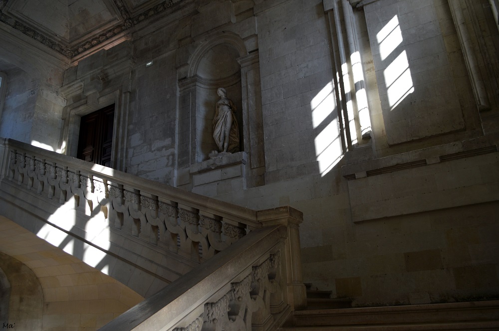 De là, nous avons gagné le château à pied. Si j’avais déjà visité il y a une bonne quinzaine d’années le château de Blois, ce n’était pas le cas de Melle 3e. J’en gardais un beau souvenir et je crois que c’est un des châteaux de la Loire qui m’avait le plus marqué lors de cette semaine de vacances où nous en avions visité plusieurs chaque jour. J’avais particulièrement aimé son côté patchwork où les différentes époques architecturales sont juxtaposées. A la billetterie, il nous a été proposé un ticket couplé avec la Maison de la Magie, situé de l’autre côté de la place. L’idée nous a plu et nous avons commencé par les découvertes magiques. Nous avons pas mal joué avec les illusions d’optique, souri pendant le spectacle de magie, été intriguées par l’histoire de Jean-Eugène Robert-Houdin, l’horloger-inventeur devenu l’un des plus grands illusionnistes du XIXe siècle (et dont les illusionnistes actuels se revendiquent encore.. ).