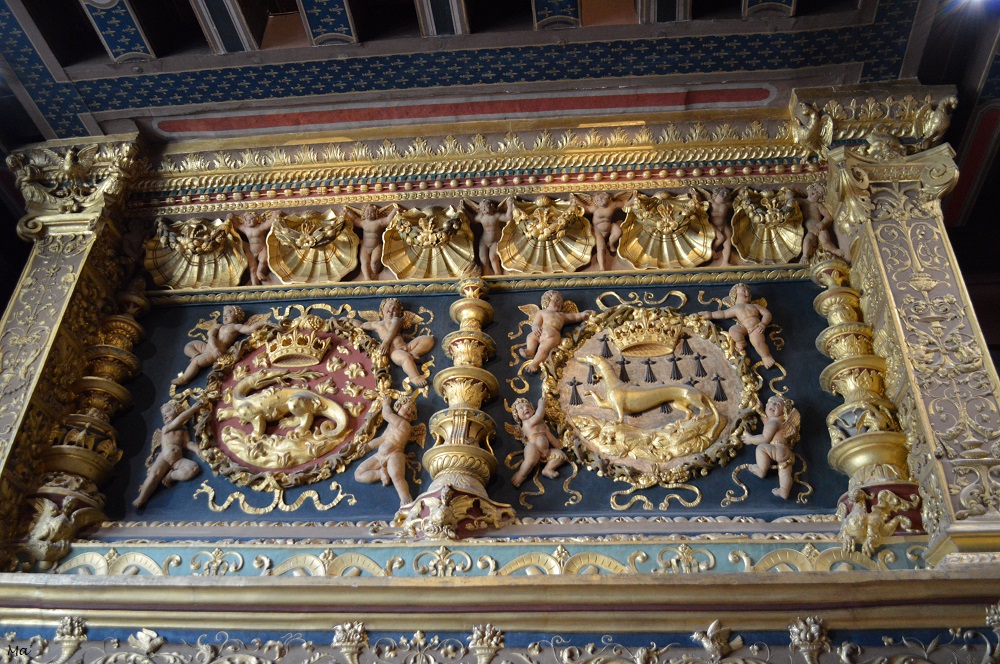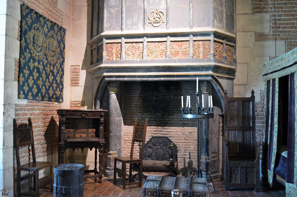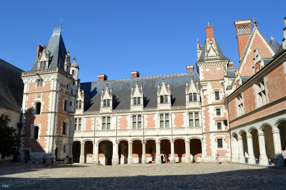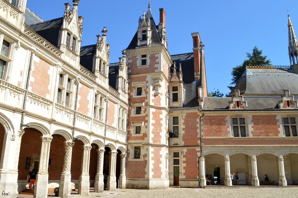 Après cela, il était temps d’enfin gagner l’intérieur du château de Blois. L’avantage, c’est que l’après-midi était déjà bien avancée et le flot de visiteurs commençait à nettement décroitre. Nous avons ainsi pu profiter des différentes pièces dans un calme relatif. Le château a été construit par ajouts successifs, aile après aile. Depuis la cour, cela donne un rendu hétéroclite, entre la pierre un peu austère de la période gothique, la blancheur et les fines sculptures de l’aile Renaissance avec son escalier monumental, la brique de l’aile Louis XII et le classicisme de l’aile Gaston d’Orléans. Ce château n’a aucune homogénéité de style et cela lui donne un charme fou !