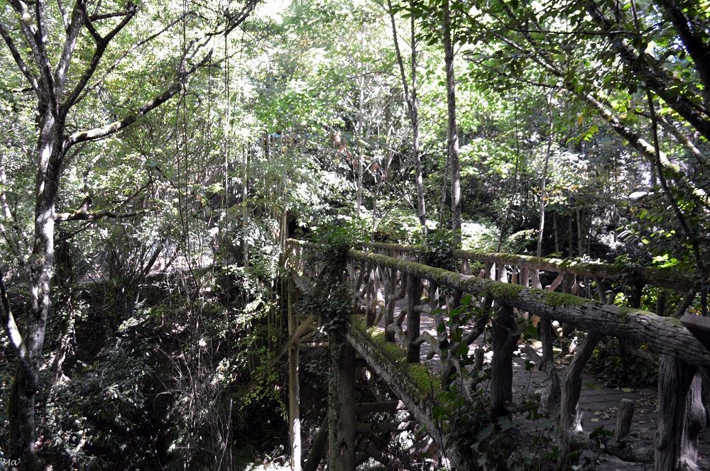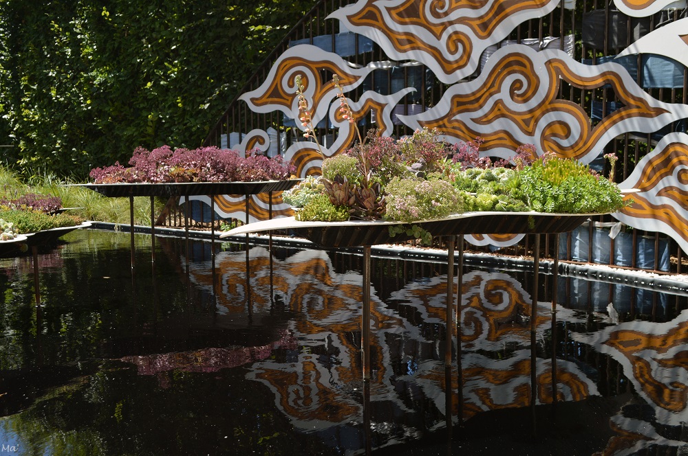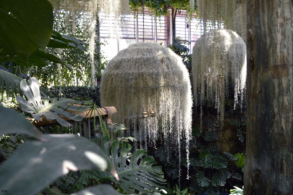 Le domaine de Chaumont accueille également chaque année un festival des jardins. Au delà des limites du parc historique, sur les anciennes terres du château, l’espace est divisé en petites sections, chacune étant investie par un artiste paysagiste. L’idée nous plaisait beaucoup et sur le papier avait tout pour nous plaire. En effet, l’une comme l’autre apprécions beaucoup les parcs et jardins paysagers. Cependant, je dois avouer que nous avons été plutôt déçues par le festival de Chaumont. Il y a sans doute plusieurs raisons à cela. La foule et la chaleur en font d’ailleurs très certainement partie. Mais, nous avons aussi eu du mal à trouver un fil conducteur entre les différents jardins et l’exiguïté de chacun de ses jardins nous a chaque fois laissées sur notre faim. Je retiendrai malgré tout deux jolies expériences immersives : l’une dans une serre entre végétation tropicale et suspensions oniriques, et l’autre dans le vallon des brumes avec son ambiance à la Indiana Jones.