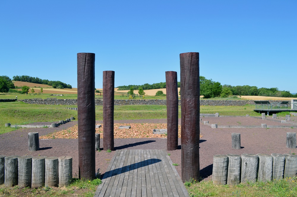 Sur les vestiges de la cité gauloise, des éléments de reconstitution ont été mis en place.L’entrée du sanctuaire de la cité gauloise de CorentLe parcours d’interprétation permet de découvrir tout le site archéologique