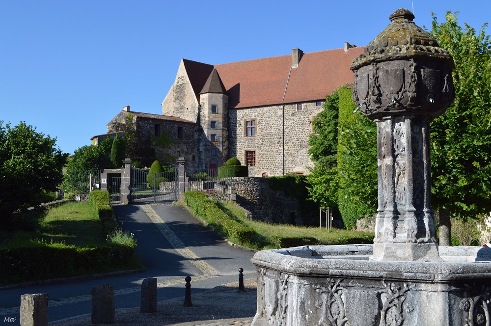 Le hasard a fait que j’ai passé une nuit à Saint Saturnin, dans une des chambres d’hôtes du Bistrot d’Ici(que je recommande car tout était top : l’accueil, la chambre, la situation géographique, le petit déjeuner..). Après avoir pris mon petit déjeuner sur la terrasse du bistrot, je suis donc naturellement partie me balader dans les ruelles de Saint Saturnin. Le village est construit sur une butte, dominée par un château et une église romane (qui comme celle d’Issoire fait partie des églises romanes majeures d’Auvergne). J’ai profité du calme matinal pour visiter l’église, admirer la façade du château (il se visite mais le jour où j’y étais n’était ouvert que l’après-midi) et découvrir les points d’intérêt du village, dont la jolie fontaine Renaissance.