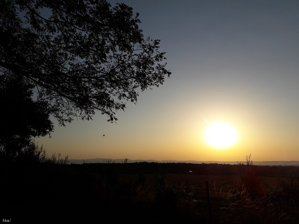 En rentrant de Livron, alors que je passais entre Montoison et Montmeyran, la lumière était époustouflante, magique contraste entre le soleil de fin de journée à l’ouest et un ciel noir de pluie à l’est. Je me suis arrêtée à Upie, au niveau du cimetière pour en profiter. L’effet sur la chapelle Sainte Baudile était vraiment impressionnant !