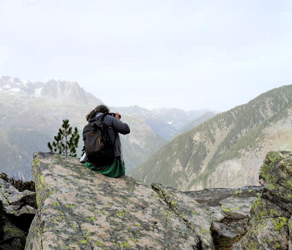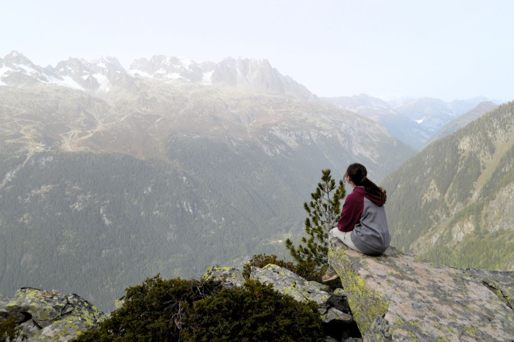 L’automne dernier, je suis allée dans la vallée de l’Arve et nous avons eu l’occasion d’aller marcher dans le massif du Mont Blanc. Et forcément, quand on croise un petit sommet, on ne peut pas s’empêcher de faire une petite pause pour admirer les environs, et faire quelques photos. Voici donc Melle 3e en pleine contemplation de la vallée de Chamonix.