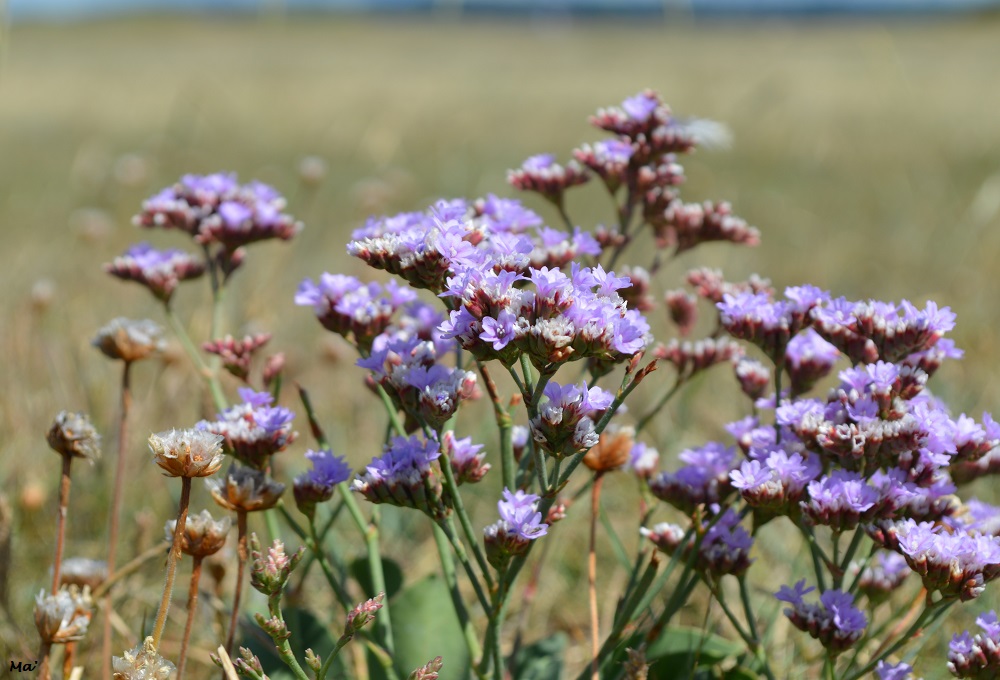 Sur l’herbu, entaillé par de larges criches, les lavandes de mer sont en fleurs et apportent de légères touches violettes dans le vert dominant. Nous continuons à marcher vers le bord de l’herbu, et nous engageons sur la tangue de la baie.