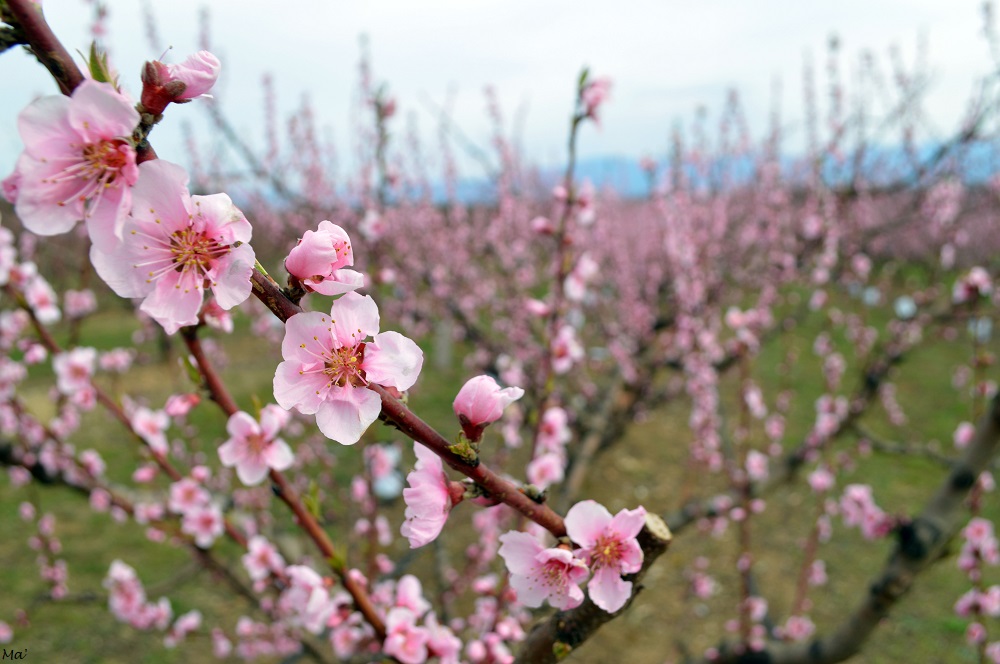 Il est difficile de passer à côté de la floraison des vergers quand on circule quotidiennement sur les routes drômoises. L’arboriculture est en effet très présente dans plusieurs secteurs, dont la plaine de Valence. Il y a ainsi de très nombreux champs d’arbres fruitiers et c’est chaque année un vrai plaisir de les voir fleurir. Ce sont les abricotiers précoces qui ouvrent le bal, généralement fin février. Les autres variétés d’abricots et de pêches suivent alors, puis c’est le tour des cerisiers et des autres fruitiers. Durant quelques brèves semaines, les champs sont parés de blanc et de rose.