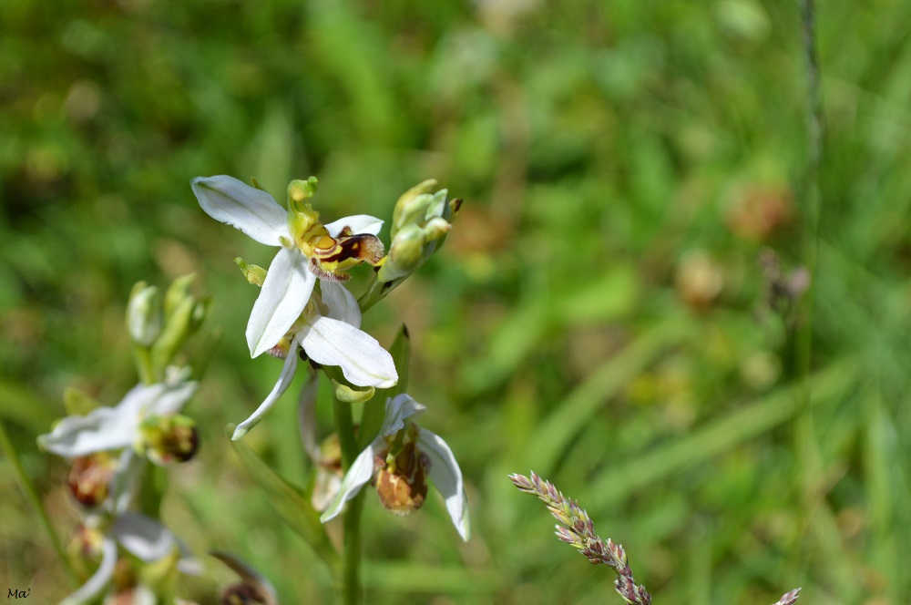 C’est ainsi que je me suis retrouvée rapidement agenouillée dans l’herbe à photographier les orchis boucs, les ophrys abeille et les anacamptis pyramidaux qui peuplaient les lieux !