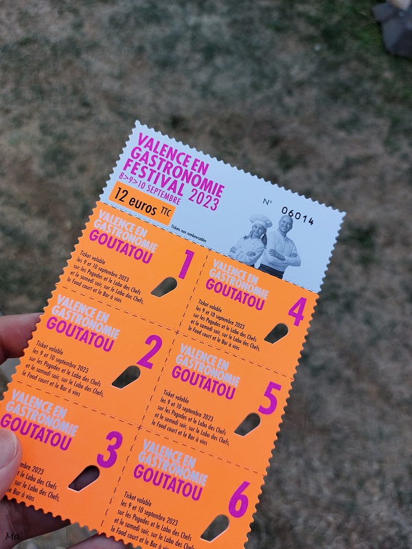 Le Valence en Gastronomie Festival est un rendez-vous annuel qui se tient au moment de la rentrée. Pendant un week-end, différentes activités sont proposées autour de la gastronomie (ainsi, en 2019, j’avais participé à un speed-tasting). Restaurateurs, artisans et producteurs font découvrir leurs spécialités sur un marché où les dégustations se paient en Goutatou, des tickets que l’on peut acheter sur place. C’est une très bonne occasion pour goûter la cuisine de grands chefs ou des produits originaux. J’avais beaucoup apprécié l’expérience l’an dernier et j’avais hâte de la réitérer cette année.