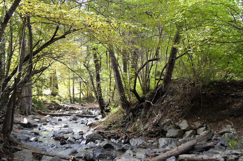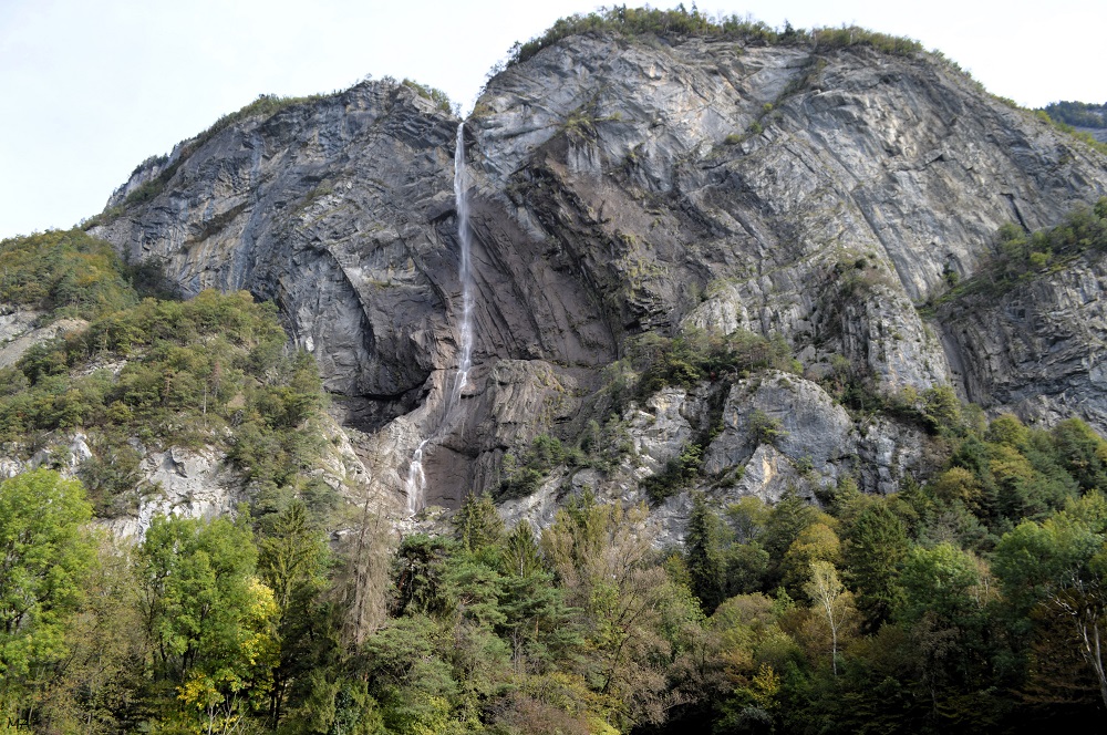 La cascade de l’Apernaz vue depuis le parkingvue sur les montagnesL’automne arrive doucement le long de la rivière