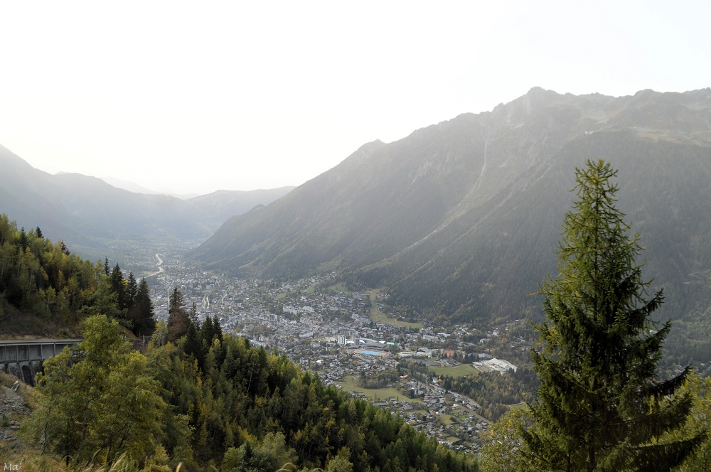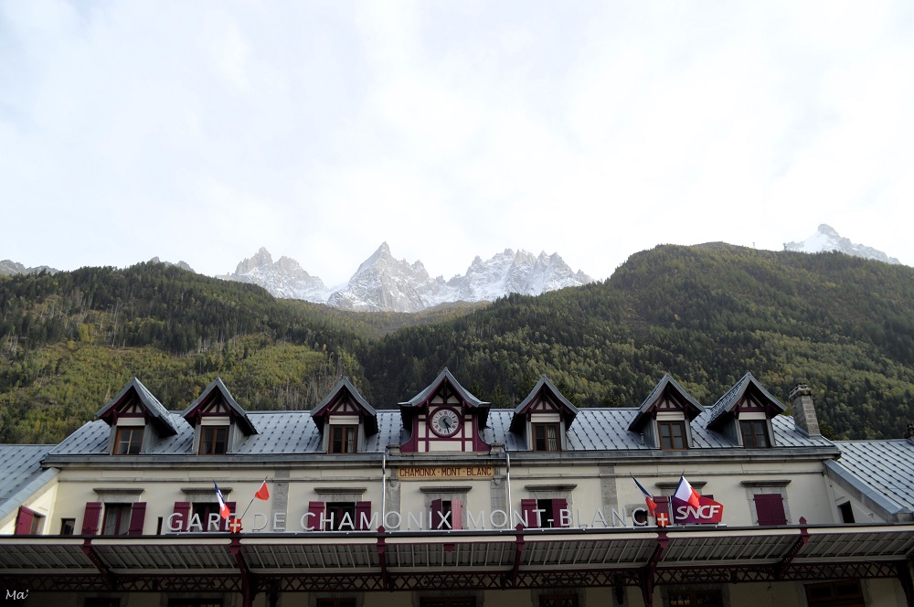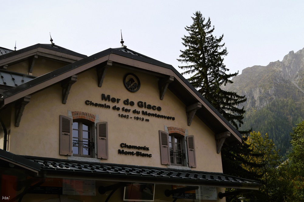 La gare de Chamonix sur le chemin de fer du MontenversVue sur la vallée de ChamonixFace aux DrusApercevoir le glacier