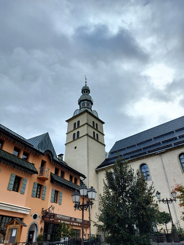 La gare, sous les aiguilles de ChamonixL’église de Chamonix et son clocher à bulbe