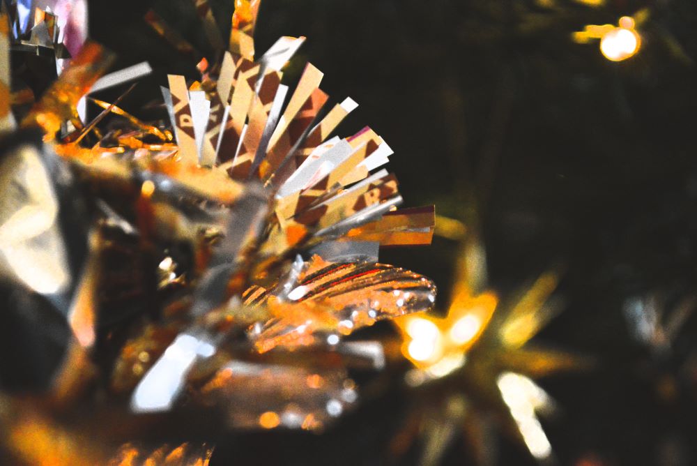 Cependant, le week-end dernier, j’ai installé mon sapin de Noël. Et en installant la guirlande lumineuse dedans, j’ai trouvé que ce serait une bonne idée pour le thème de cette semaine. J’ai donc sorti mon appareil photo. Puis, j’ai aperçu la coupe de papillotes et les papiers brillants scintillaient dans la lumière de la guirlande. Voilà, j’avais ma photo !
