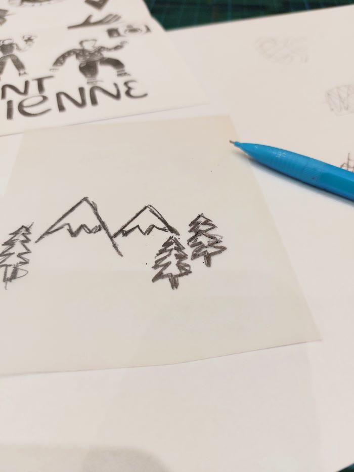 Etape 1 – dessiner son motif sur papier calque (et se demander pourquoi j’ai choisi de mettre des sapins alors que je ne sais pas les dessiner correctement)