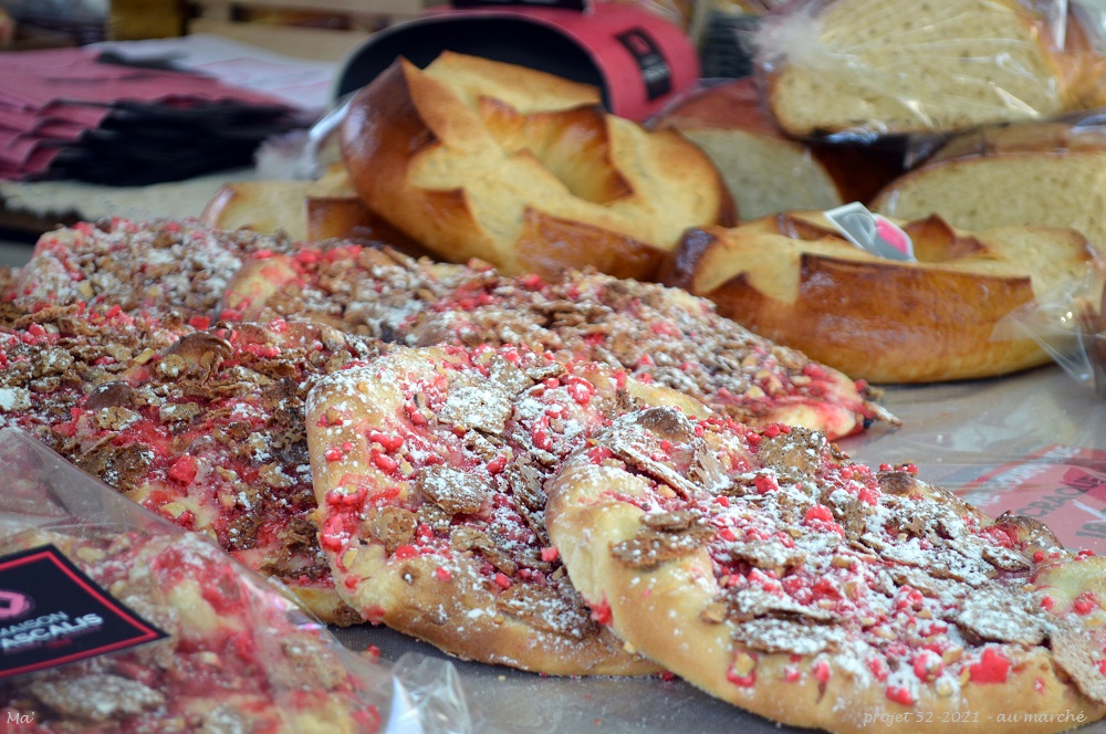 C’est donc une photo qui date de l’automne dernier que je vous propose. C’était un marché un peu particulier ce jour-là à Romans car il avait lieu dans le cadre de la fête de la pogne et de la raviole. Tous les boulangers de la ville avaient leurs stands proposant diverses déclinaisons de la pogne, dans plein de tailles différentes… aussi bon à déguster que joli à regarder !