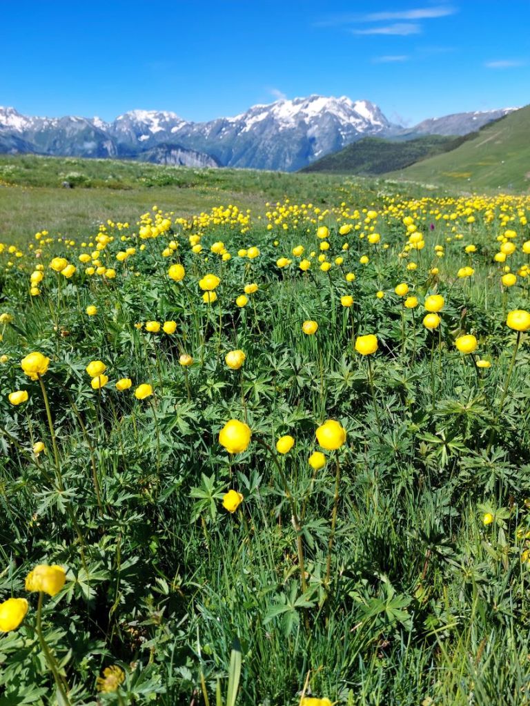 Je ne connaissais pas encore les trolles, ces fleurs jaunes des alpages d’altitude, et je les ai trouvées très belles.