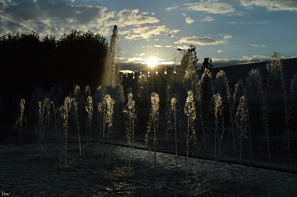 Alors que le soleil se couchait, il jouait joliment dans les jets d’eau de l’avenue Marx Dormoy.