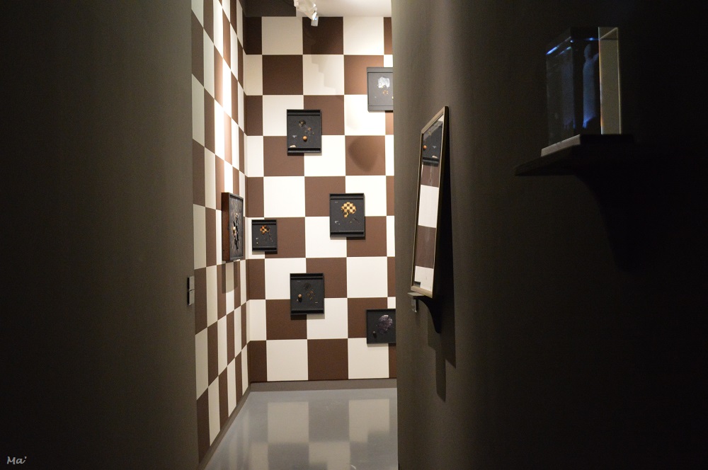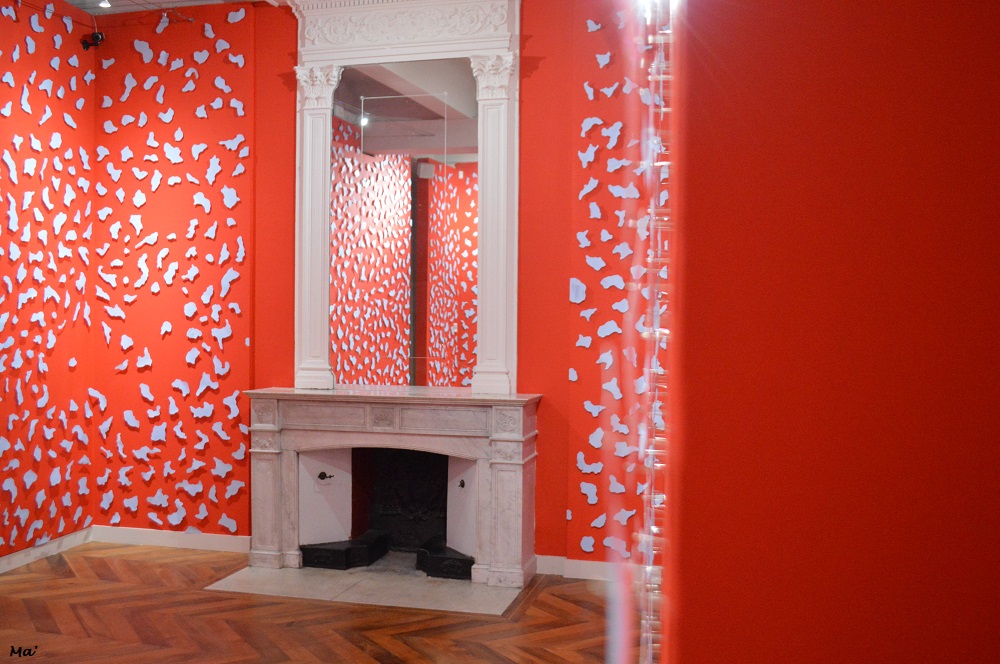 Il faut également noter le petit cabinet entièrement repeint de rouge éclatant et sur lequel flottent des îles de papier, découpées sur des cartes marines et épinglées sur les murs. C’est une totale immersion dans l’oeuvre, hypnotique, envoûtante. Et c’est sans doute mon morceau préféré de cette exposition.
