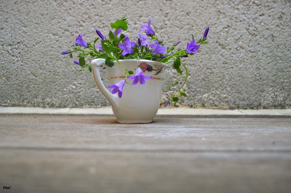 Bouquet de campanules et porcelaine ancienne….