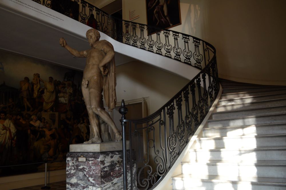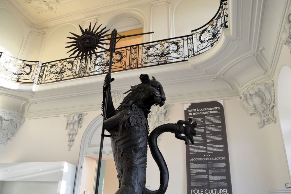 L’ancienne abbaye Saint Vaast date du XVIIIe siècleLe grand escalier dans l’entrée du muséeLe lion d’Arras se trouve au dessus du beffroi et est surmonté du soleil de Louis XIV