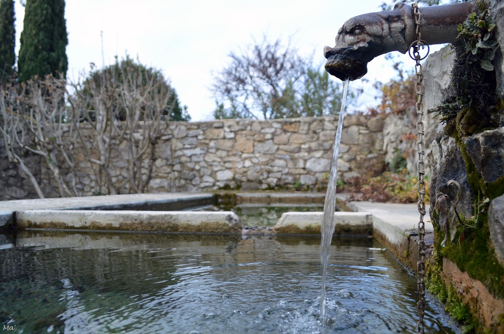 Une fois sur place, j’ai fait le tour du village, passant par les jolies ruelles et calades. Je suis montée jusqu’au château. J’avais espéré pouvoir y prendre un café mais l’hôtel était encore fermé. Tant pis, j’ai arpenté l’ancienne forteresse et ses jardins suspendus, profitant du panorama. J’ai terminé ma balade par un petit crochet au lavoir-fontaine ( #PassionFontaines ).