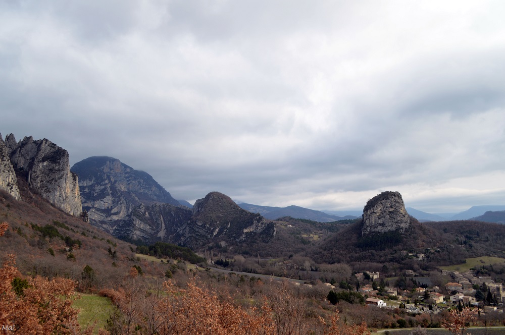 Ce printemps a été très pluvieux dans la Drôme. Et la météo n’a pas toujours été très favorable à de longues balades ou à des randonnées. Mais comme il n’était pas question pour moi de ne pas mettre du tout le nez dehors, j’ai fait des petites sorties ces jours gris. Au programme : des villages et de courtes randonnées pas très loin de la maison. Je vous en propose trois exemples ici. Bien entendu, elles sont aussi réalisables par grand beau temps, mais vous pourrez constater à travers les photos que même sous un ciel couvert, elles restent agréables.