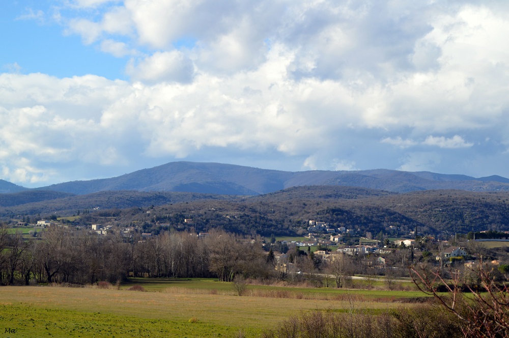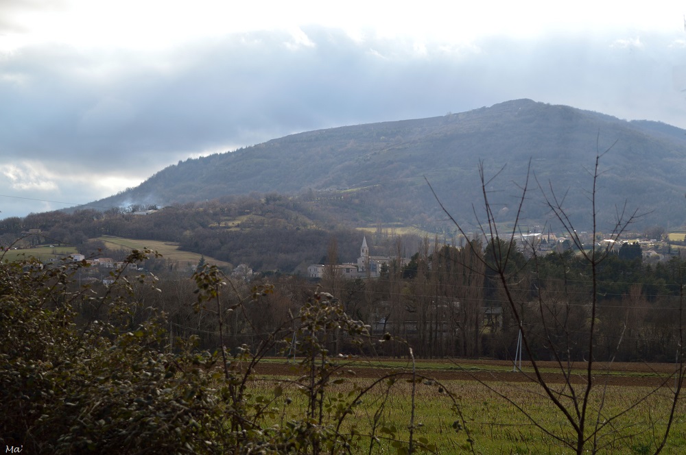 Je rentrais du forum touristique Destination Ardèche au Pouzin et d’une petite balade sur la voie douce de la Payre en remontant la vallée de la Drôme quand la lumière qui baignait le paysage m’a donné envie de m’arrêter en profiter. J’ai donc bifurqué vers le village de Chabrillan. J’avais déjà eu l’occasion de me promener dans ce village perché, enroulé au pied de son ancien château. On y découvre en particulier une vue magnifique sur le synclinal de la forêt de Saoû.