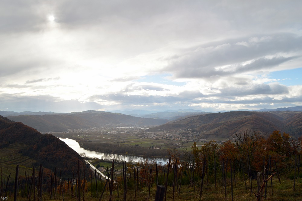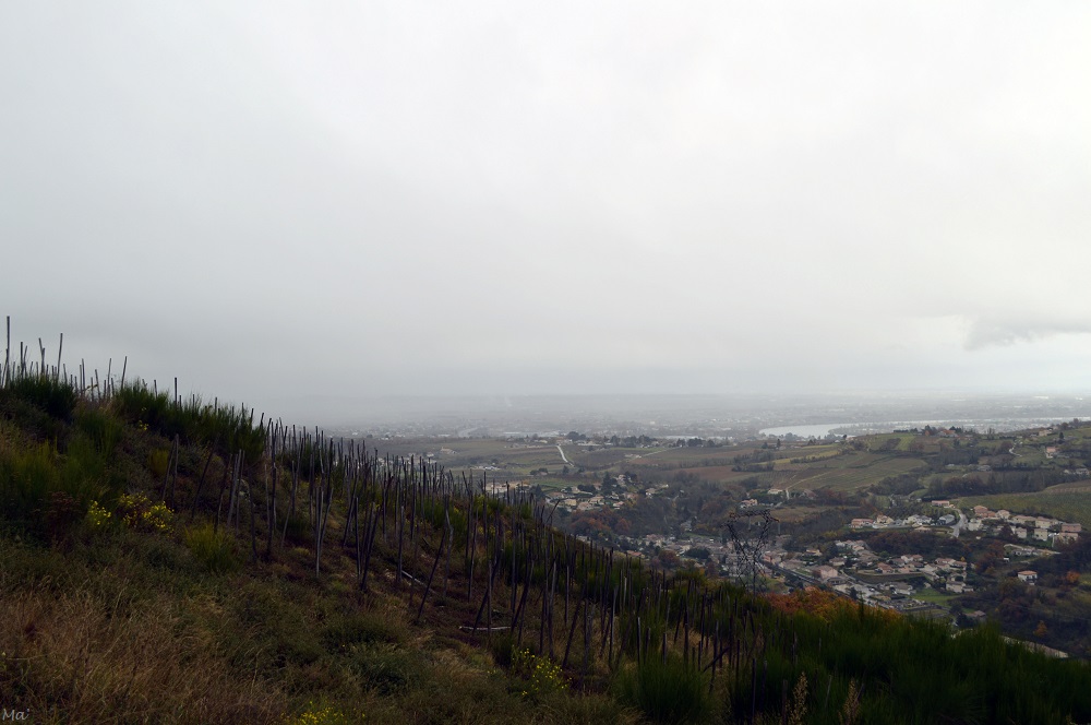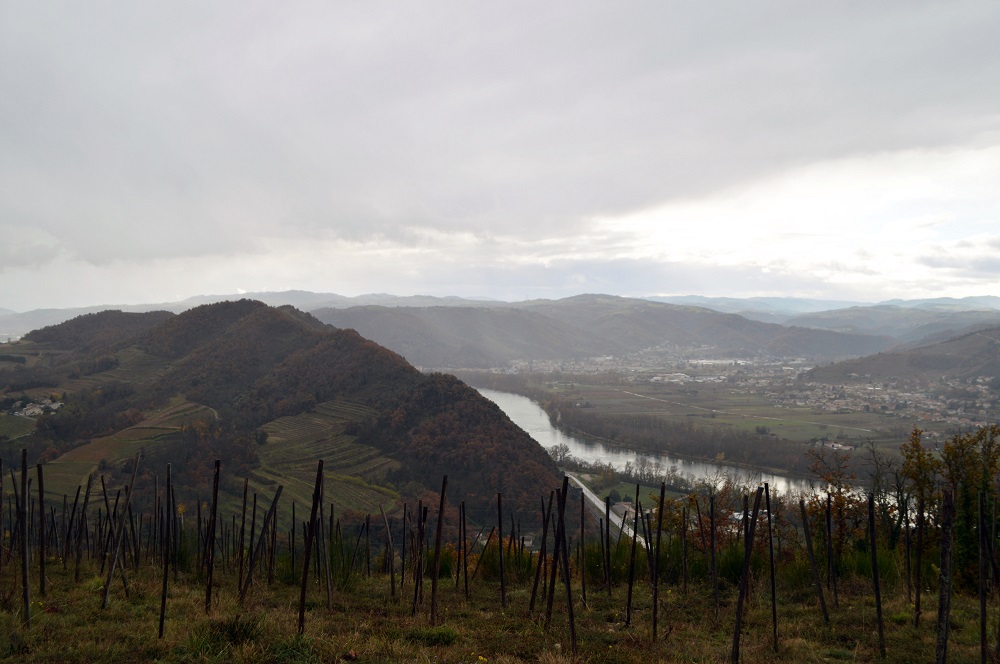 La randonnée concoctée par Sandrine nous emmène au cœur du vignoble. En montant, nous découvrons de superbes points de vue sur la vallée du Rhône, le massif du Vercors et le village de Saint Désirat. Sandrine en profite pour nous raconter un peu la vie de ce village. On y trouve en particulier une distillerie d’eaux de vie de fruits, née de la reconversion d’une famille d’arboriculteurs. On échange, on discute, on rigole. Cela me change de mes randos solos habituelles !